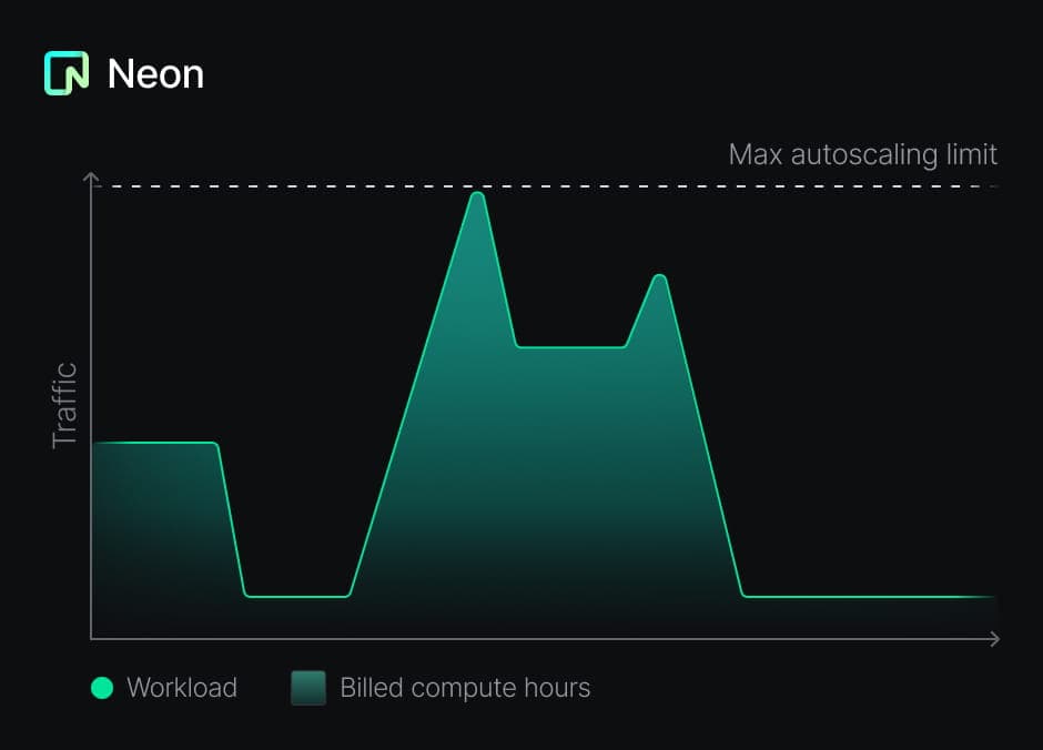 • Neon is serverless Postgres. Instead of provisioning a fixed CPU/memory, you specify an autoscaling range.